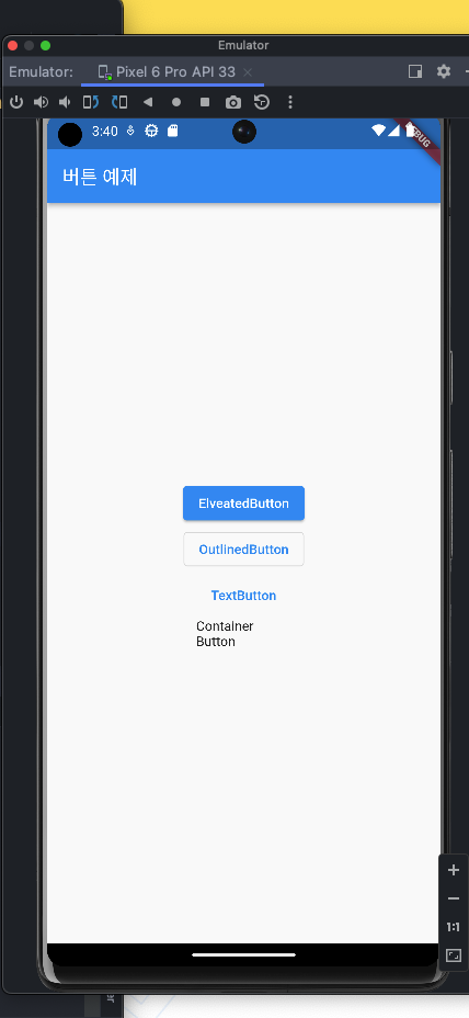 현재 Flutter에서 제공하는 기본적인 버튼은 총 3가지입니다.
