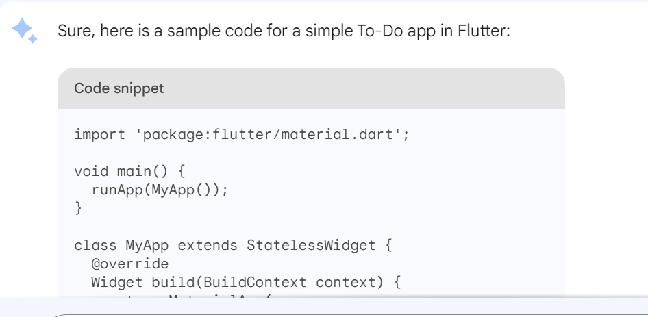 플러터를 이용해서 Todo app 샘플코드를 만들어 달라고 했다.