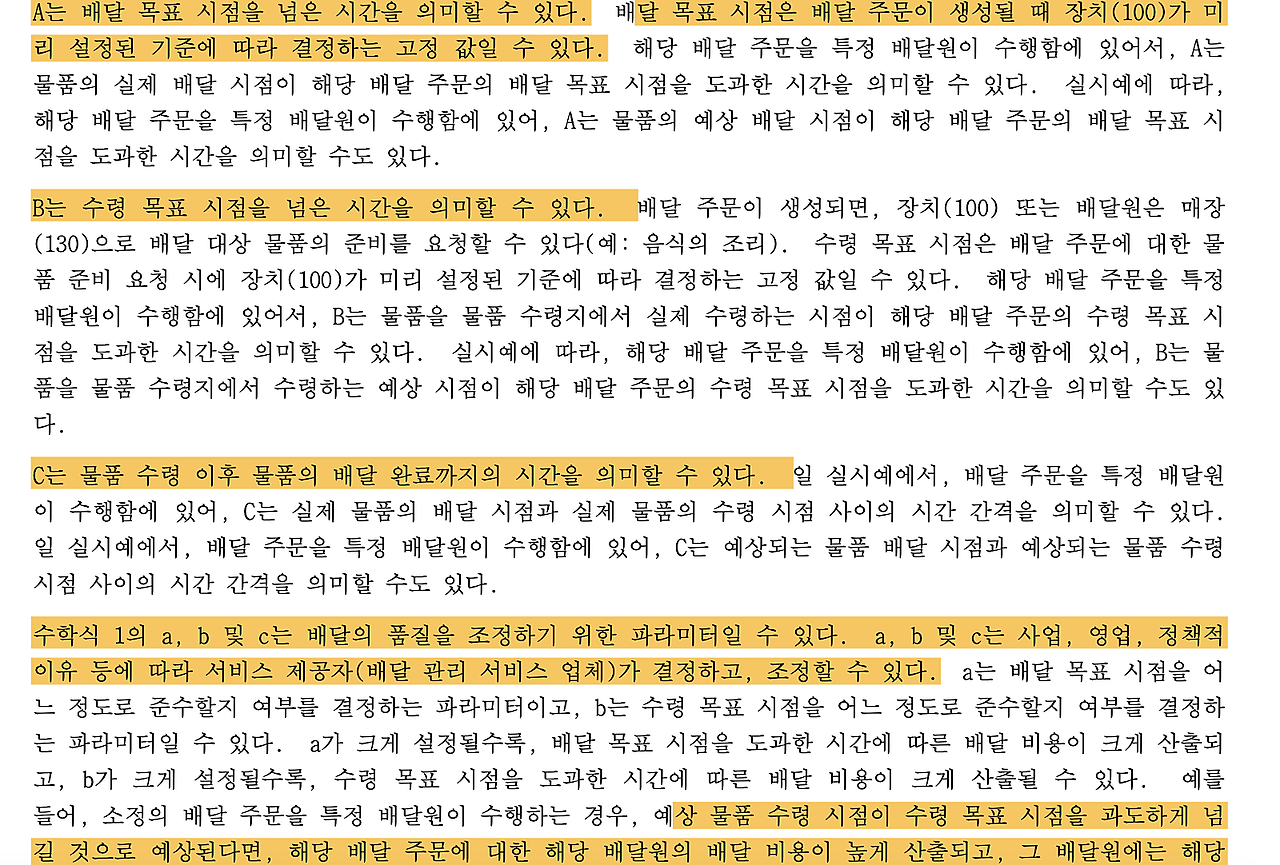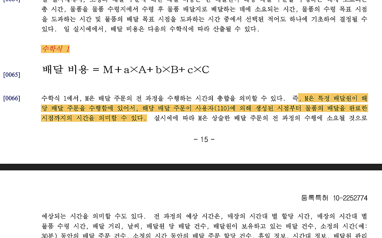 2. 이 글을 작성하면서 인용되는 우아한형제들 "발명의 명칭 배달 과정을 관리하기 위한 장치, 방법 및 명령을 기록한 기록 매체 " 기술특허 문서는 2020년 출원한 문서입니다. 4년전 문서이므로 배민은 배민원을 운영하면서 쌓인 노하우로 문서에 작성 된 세부적인 수치는 지금과는 다를 수 있습니다.