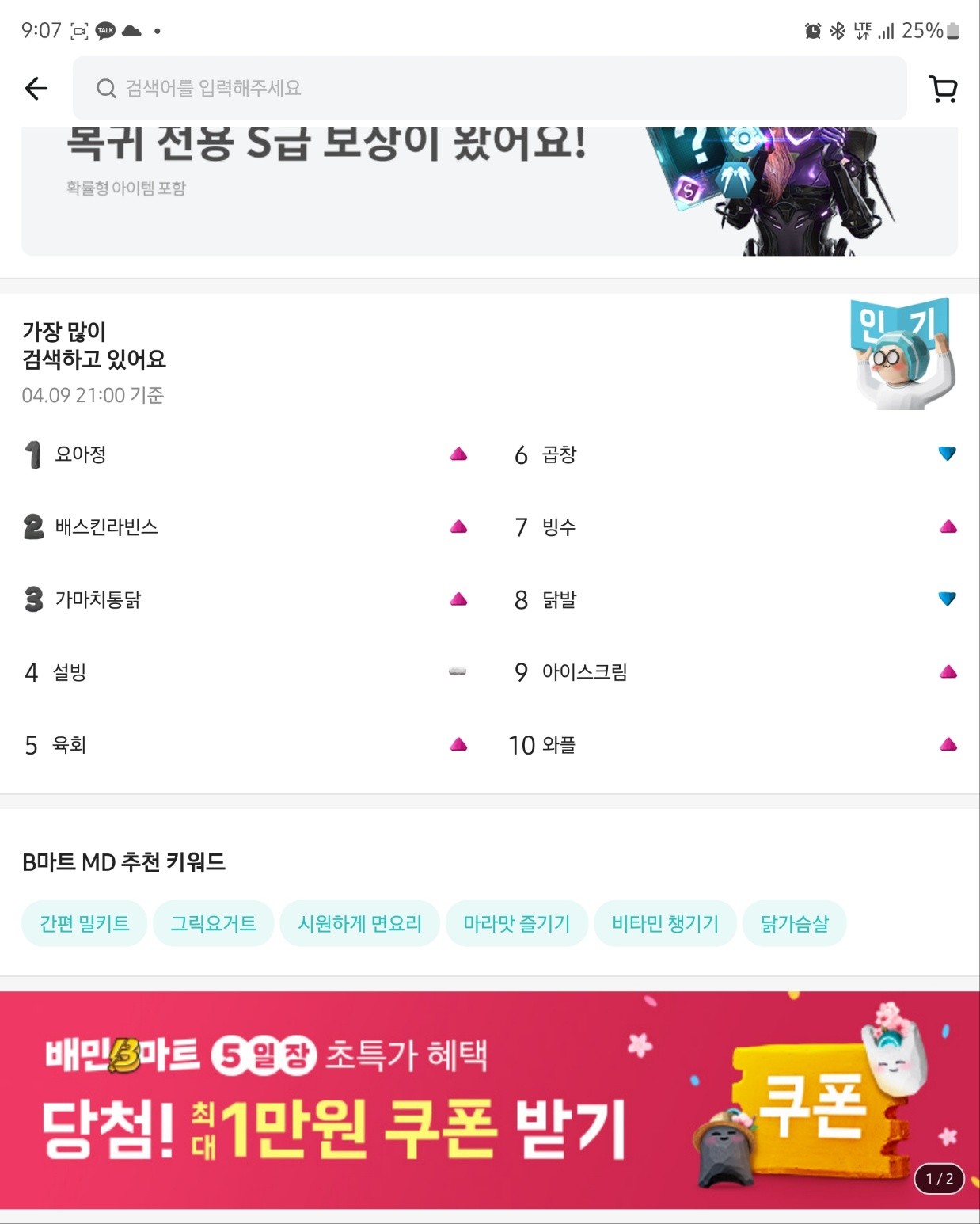 내일은 투표하는 날입니다. 빨간날입니다. 분명 여러 사람들이 모여서 소주를 마시면서 내일 선거 결과에 대해 이야기를 많이 하는 날입니다. 소주 안주인 찜이나, 탕이 많아야 정상이라고 생각합니다. 하지만 인기 검색어에 떡하니 아이스크림, 빙수 ,육회 등등 조리시간이 짧은 메뉴가 올라와 있습니다. 거기다 해당 인기검색어를 클릭하면 1순위 = 우리동네가게클릭 그다음 순위는 배민원플러스 광고입니다.