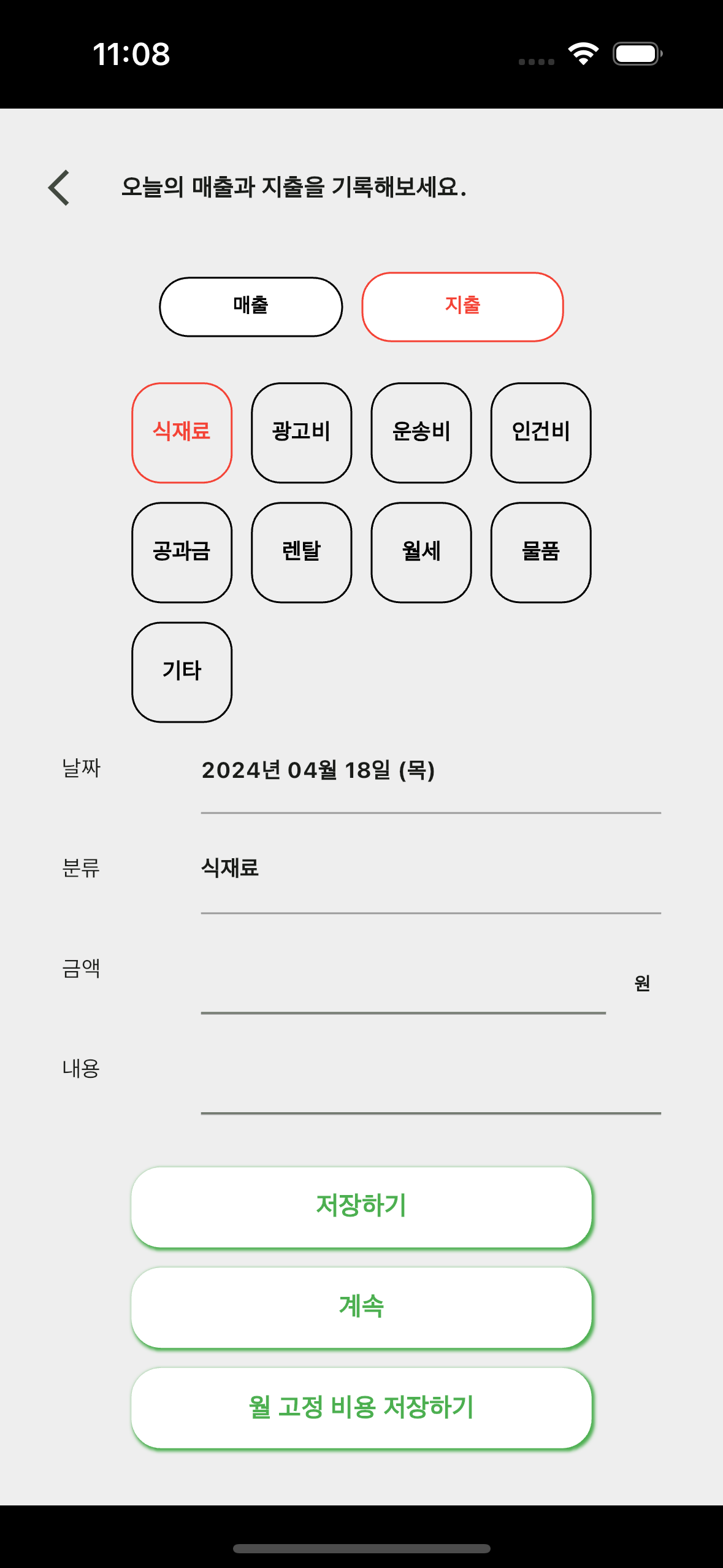 가계부 앱에 있는 매출, 지출에 있는 카테고리 순서를 바꾸기