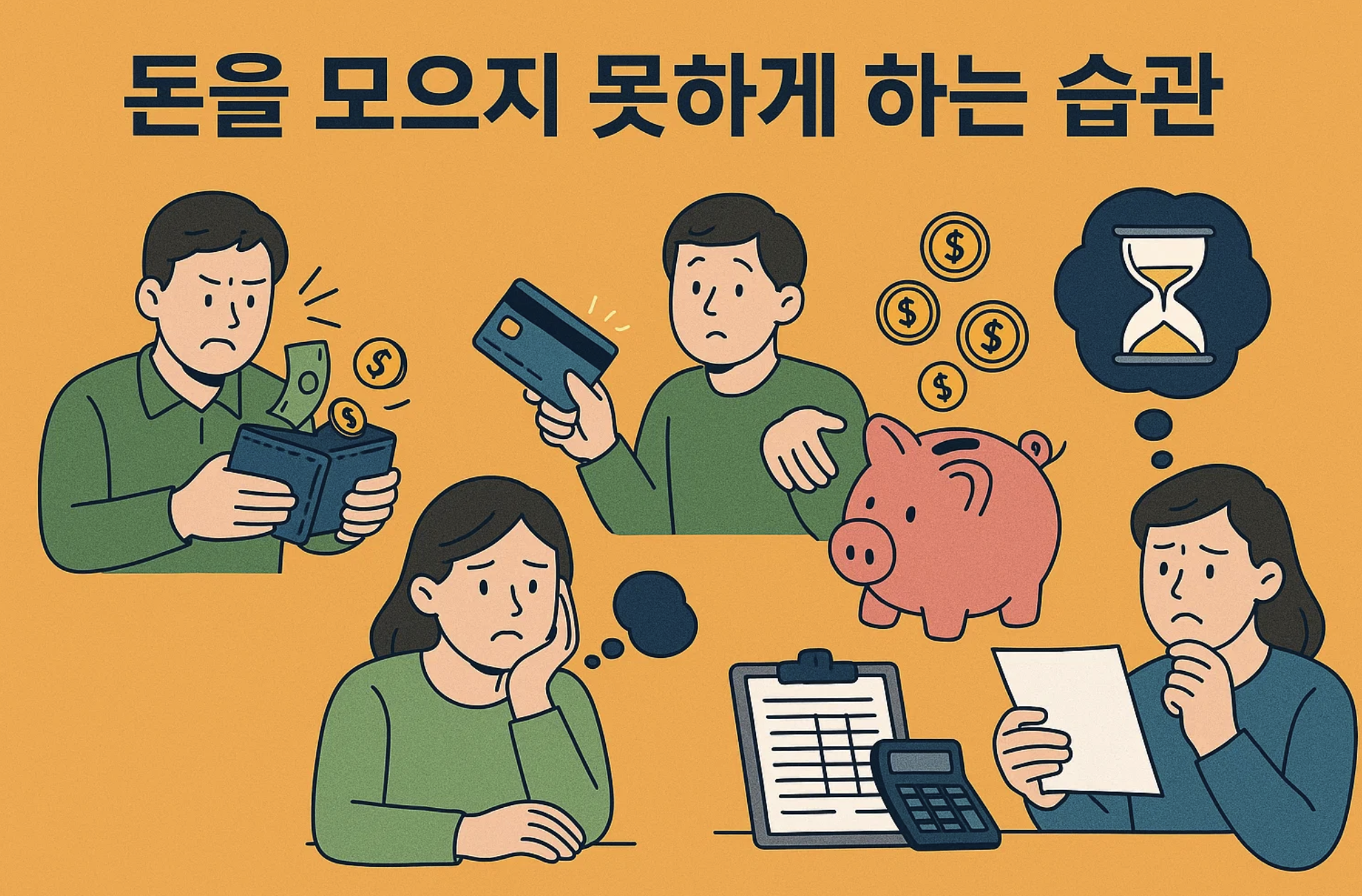 3. 작은 돈에 대한 무관심: "이 정도는 괜찮겠지" 하는 생각으로 사소한 지출을 반복하다 보면, 나도 모르는 사이에 큰돈이 새어 나가게 됩니다. 작은 돈이라도 소중히 여기고 관리하는 습관을 들이지 않으면 돈을 모으기 어렵습니다.