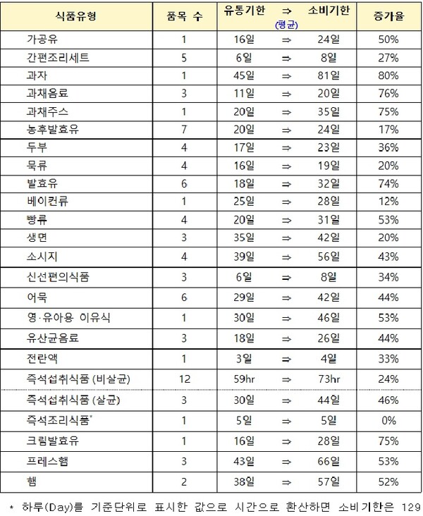 기존 유통기한과 소비기한의 차이가 많게는 20일 이상 차이가 납니다!